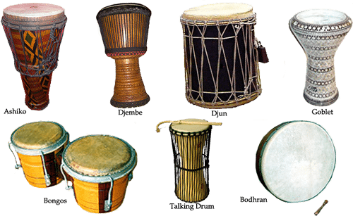 ♪ Membranofonus: garsas atsiranda vibruojant membranai (būgnai). Skirstomi į paprastus būgnus, vamzdinius būgnus, trinamuosius, litaurus ir mirlitonus.