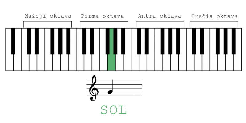 Pamokoje apie penklinę sužinojome, jog natos rašomos eilutėse ir tarp eilučių. Jei rašysite natas aukštyn nepraleisdami nei vienos eilutės ar tarpo – jūs rašysite laipsnišką gamą aukštyn. Taigi, žinant kur yra SOL nata penklinėje, galite laisvai atsiskaičiuoti natų aukštį. Paveikslėlyje matote užrašytą DO gamą.